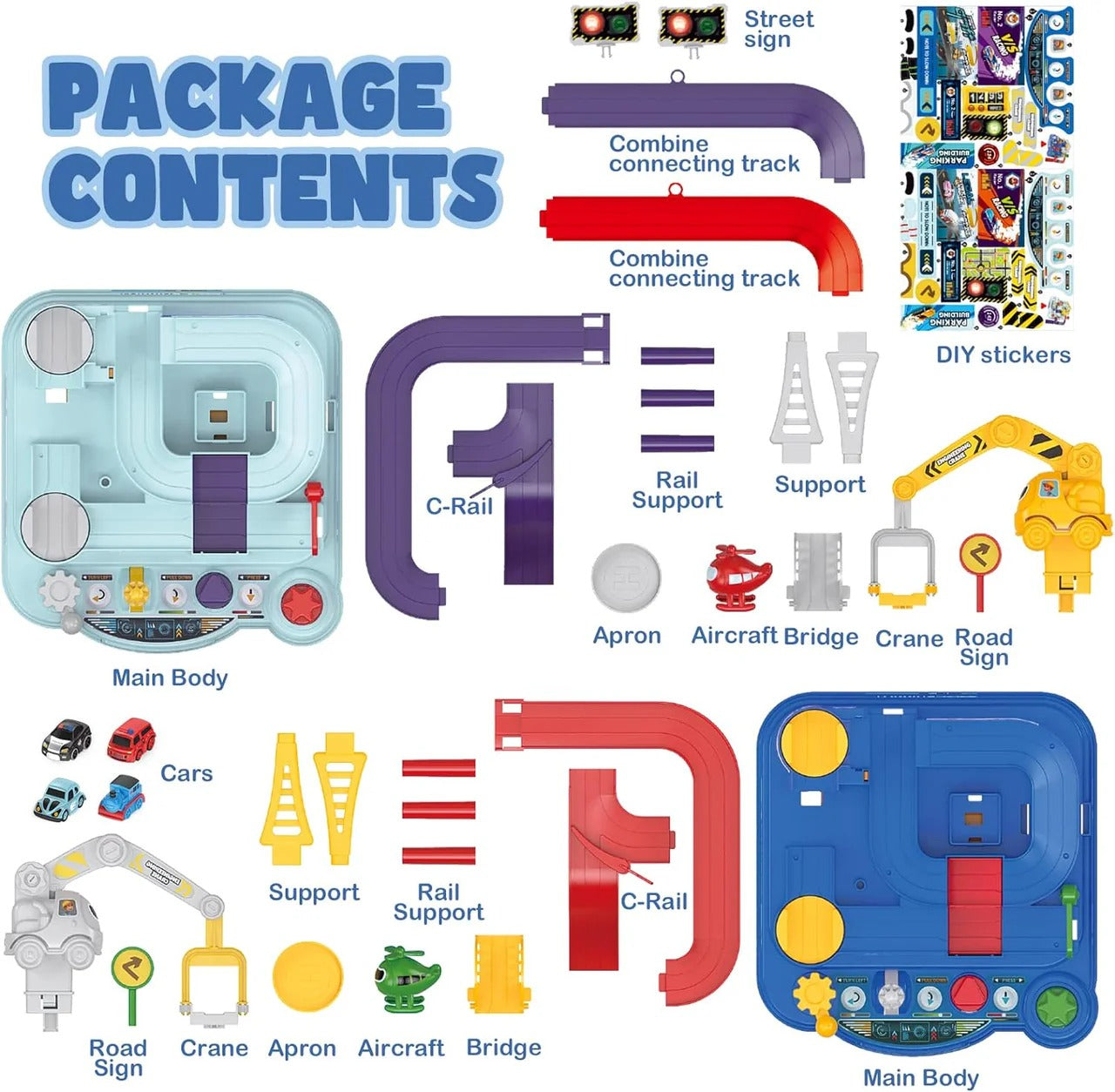 Manual Car Adventure Dual Version Track Set - 4Pcs Assorted Cars