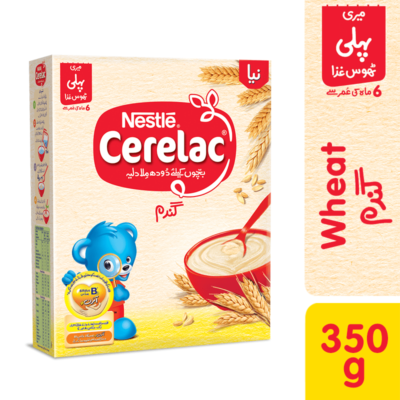 At 6 months old, your baby is ready to try his first solid foods. Packed with all the necessary nutrition to support his growing needs, NESTLÉ CERELAC is available in 8 different and delicious variants which your baby will love. Great for taste and big on nutrition! NESTLÉ CERELAC Wheat is rich in iron making it the first ideal weaning food for your baby.